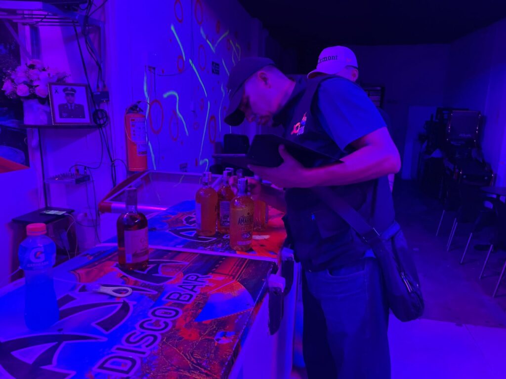 Durante las intervenciones, las autoridades incautaron 174 productos entre botellas y paquetes con estampillas no autorizadas o presuntamente falsas, algunos con sedimentos o partículas en suspensión, y otros sin documentación que acreditara su origen legal.