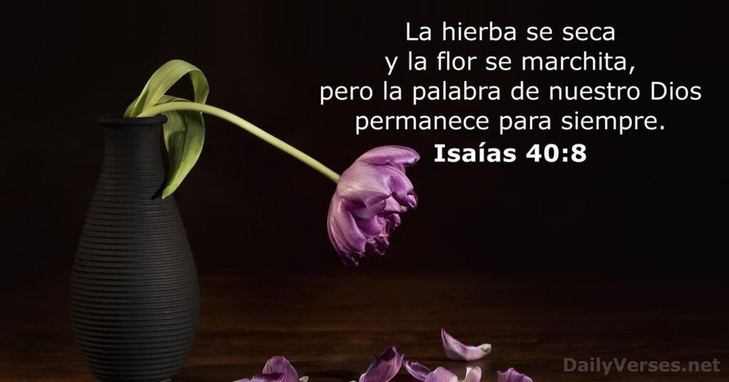y su grandeza es como flor del campo. Se seca la hierba y la flor se marchita, pero la palabra de nuestro Dios permanece para siempre”. Sube a lo alto del monte, mensajero de buenas nuevas para Sión; alza con fuerza la voz, tú que anuncias noticias alegres a Jerusalén. Alza la voz y no temas; anuncia a los ciudadanos de Judá: