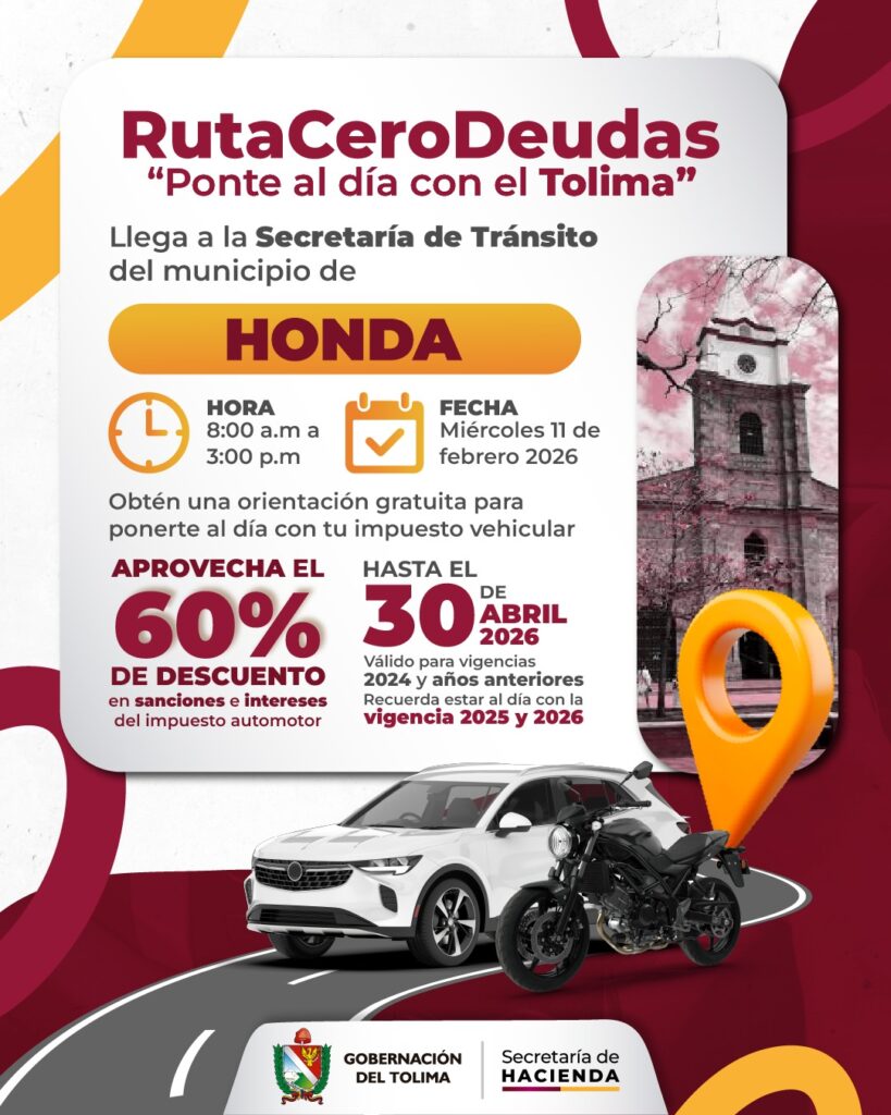 La Gobernación del Tolima, a través de la Secretaría de Hacienda, realizó este miércoles 11 de febrero la jornada “Ruta Cero Deudas: Ponte al día con el Tolima” en el municipio de Honda.