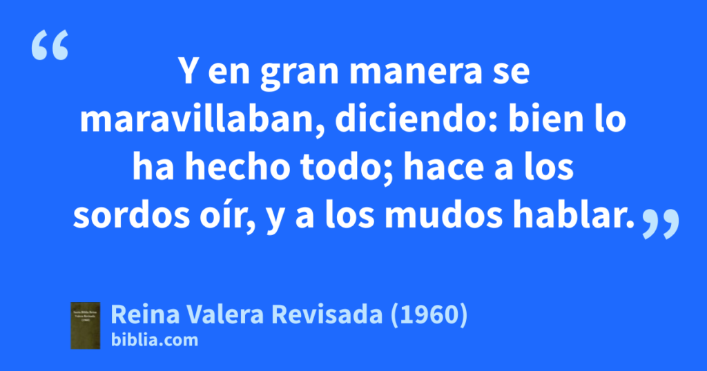 Él les mandó que no lo dijeran a nadie; pero cuanto más se lo mandaba, ellos con más insistencia lo proclamaban; y todos estaban asombrados y decían: «¡Qué bien lo hace todo! Hace oír a los sordos y hablar a los mudos».
