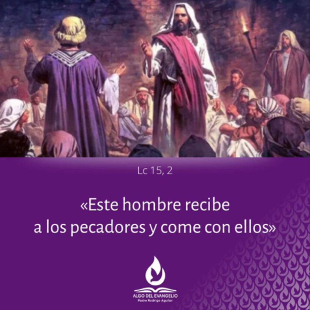 En aquel tiempo, se acercaban a Jesús los publicanos y los pecadores para escucharlo. Por lo cual los fariseos y los escribas murmuraban entre sí: «Éste recibe a los pecadores y come con ellos».
