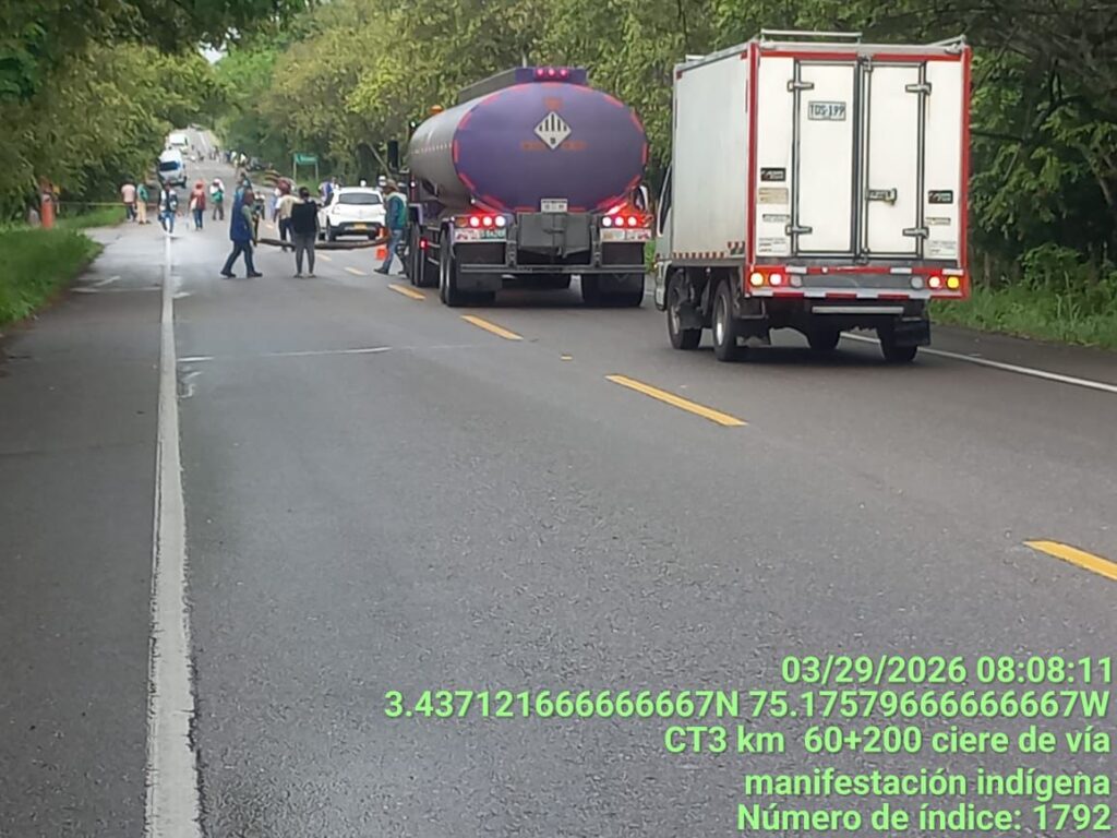 Al momento se presenta cierre total de la vía en el km 60+200, sector Balsillas, por parte de la comunidad indígena de la zona, debido a manifestaciones contra el gobierno nacional, han dicho voceros de los manifestantes que indicaron que se están llevando a cabo cierres intermitentes de una (1) hora y treinta (30) minutos, con aperturas de treinta (30) minutos.